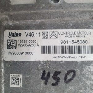 Блок управління двигуном Valeo V29059263A V46.11, 9811545080, 9800913080 PEUGEOT 208 2008 1.2 VTI